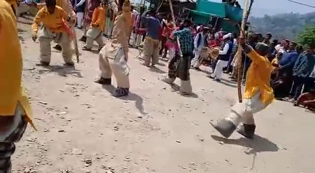 चकराता: जौनसार के पौराणिक त्यौहार मे आज कई वर्षों के बाद आज ठौऊणा नृत्य अपनी संस्कृति के साथ अपनी धुन मे खेलते हुए ग्रामीण