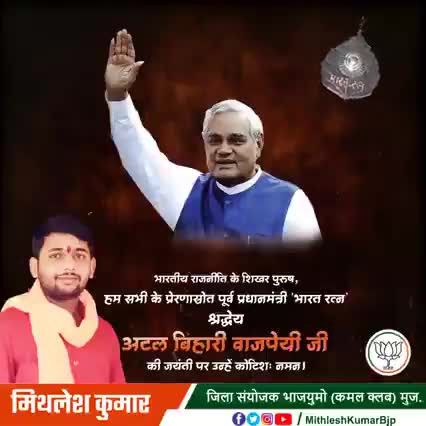 अपनी कविताओं में संवेदना और शाश्वत सत्य डालकर जीवंत करने वाले महान कवि, पूर्व प्रधानमंत्री एवं "भारत रत्न"परम श्रद्धेय अटल बिहारी वाजपेयी जी की जयंती पर उन्हें कोटि कोटि नमन !