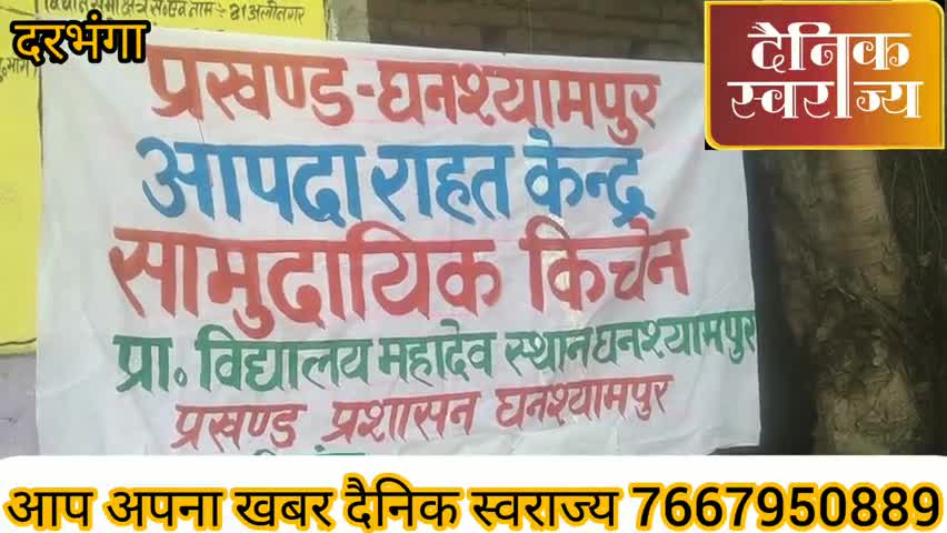 घनश्यामपुर प्रखण्ड के घनश्यामपुर प्राथमिक विद्यालय महादेव मंदिर में आपदा राहत केंद्र समुदायिक किचेन चलाया 4 दिनों से चल