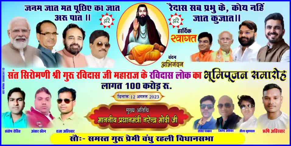 संत शिरोमणि श्री गुरु रविदास जी महाराज के मंदिर निर्माण भूमिपूजन समारोह लागत 100 करोड़ रु.