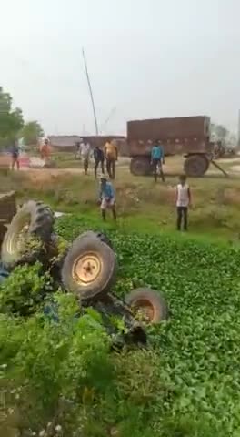 निचलौल: #निचलौल क्षेत्र के पिपराकाँजी नहर में अचानक से पलट गया टैक्टरऔर ट्राली इवक जान बचाके कुद पड़ा