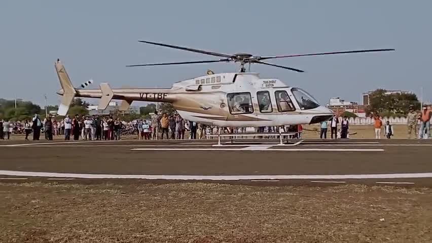 शिवपुरी हवाईपट्टी पर आए हेलीकॉप्टर को देखने के लिए उमड़ी भीड़(टिकट के द्वारा कराया जा रहा है शिवपुरी भ्रमण) जारी है सेवा