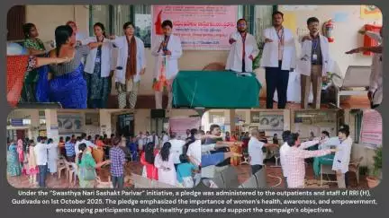 Under the Swasthya Nari Sashakt Parivar initiative, a pledge was administered to the patients & staff of RRIH, Gudivada.