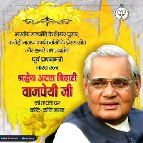 भारतीय राजनीति के शिखर पुरुष, पूर्व प्रधानमंत्री भारत रत्न श्रद्धेय अटल बिहारी वाजपेयी जी की जयंती पर कोटि-कोटि नम
