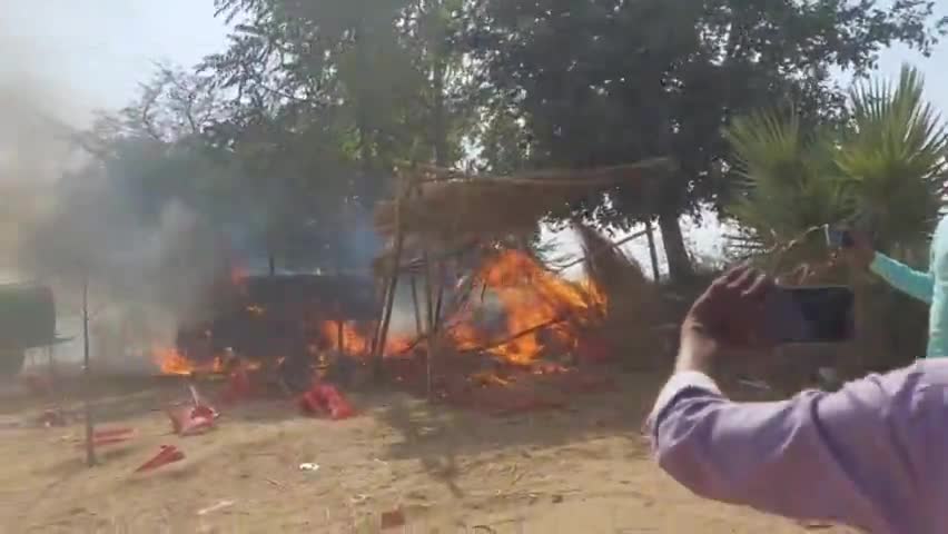 इमामगंज: बेलवार बालूघाट पर ग्रामीणों ने तोड़-फोड़ कर घाट पर खड़ी कार व लैपटॉप समेत कई सामान में लगाई आग