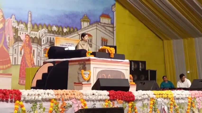 टिकारी: पंचमहला में आयोजित श्रीमद भागवत कथा सह महायज्ञ में प्रवचन करती देवी चित्रलेखा व उमड़ी श्रद्धालुओं की भीड़