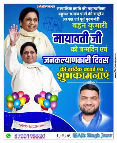 बहन कु. मायावती जी को 68, वे 🎂🎂जन्मदिवस की हार्दिक शुभकामनाएं जय भीम 🙏🙏