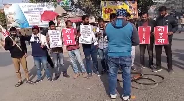 मिथिला विश्वविद्यालय के भ्रष्ट कुलपति और कुलसचिव की बर्खास्तगी सहित विभिन्न मांगो को लेकर छात्र संगठन AISF का प्रदर्शन।