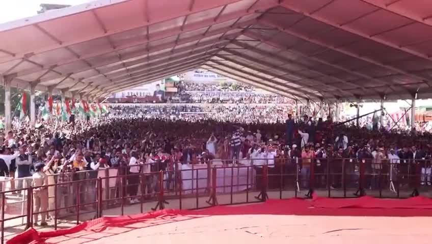 सोलन, हिमाचल प्रदेश: सभास्थल पर पहुंची कांग्रेस महासचिव प्रियंका गांधी जी। परिवर्तन प्रतिज्ञा रैली में उमड़े जनसैलाब का किया अभिवादन।