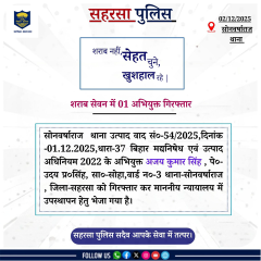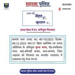 सहरसा पुलिस आपकी सेवा में सदैव तत्पर