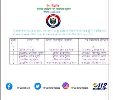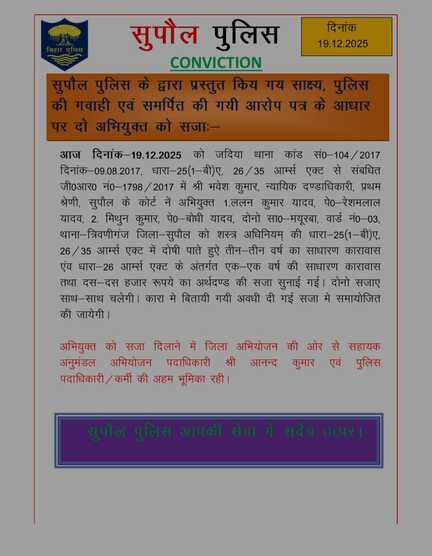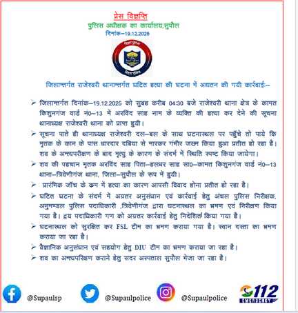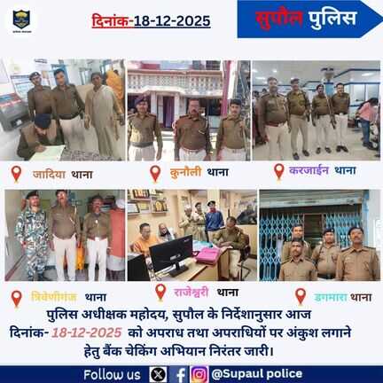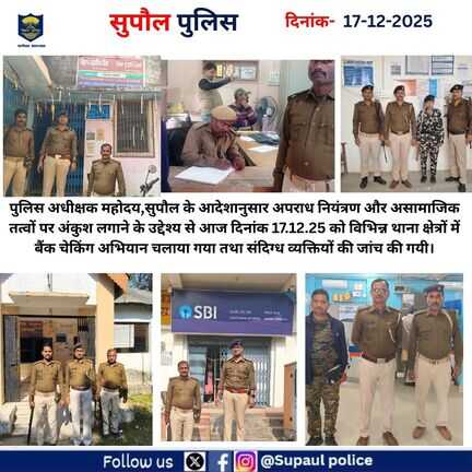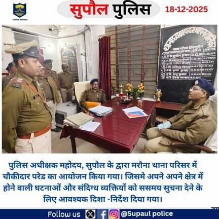 सुपौल पुलिस के आधिकारिक प्रोफाइल पर आपका स्वागत है।