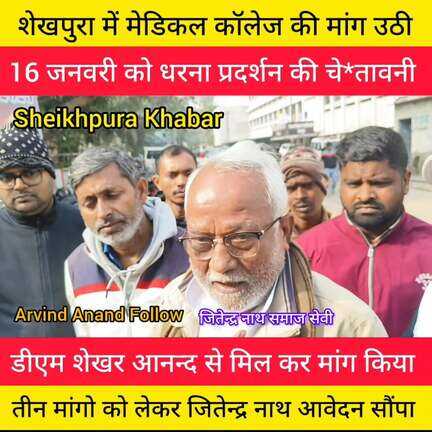 हर खबर को देखने के लिए Sheikhpura Khabar को Follow करें। जन समस्या, राजनीतिक, खेल कूद सहित अन्य खबर।