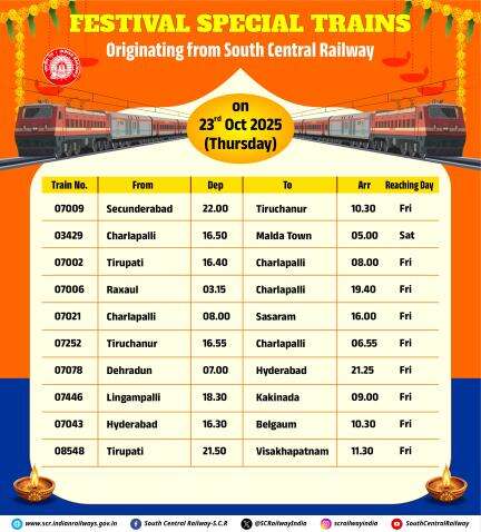 Official Handle of South Central Railway. SCR has 6 Divisions & predominantly serves TS, AP, MH, KA