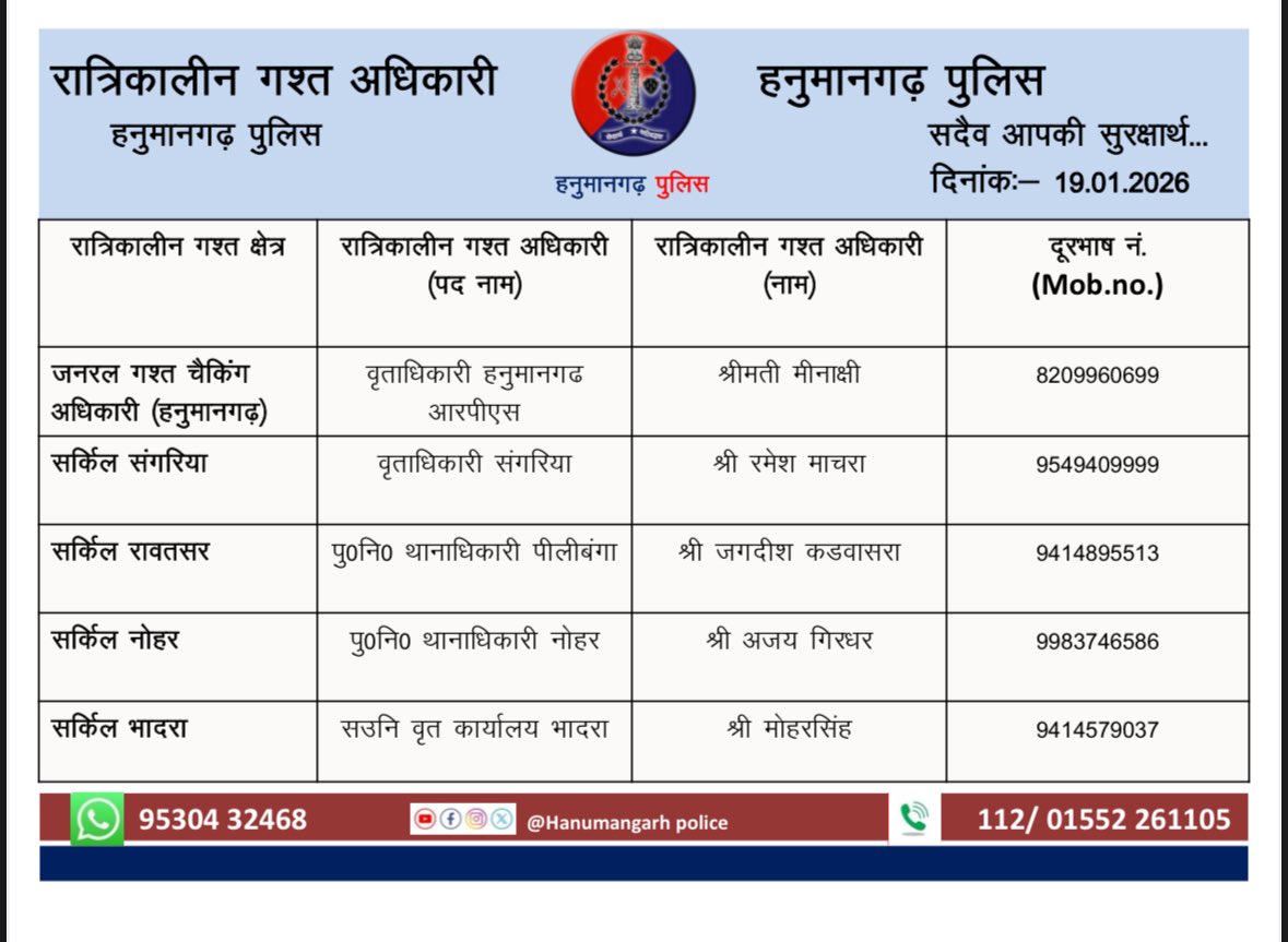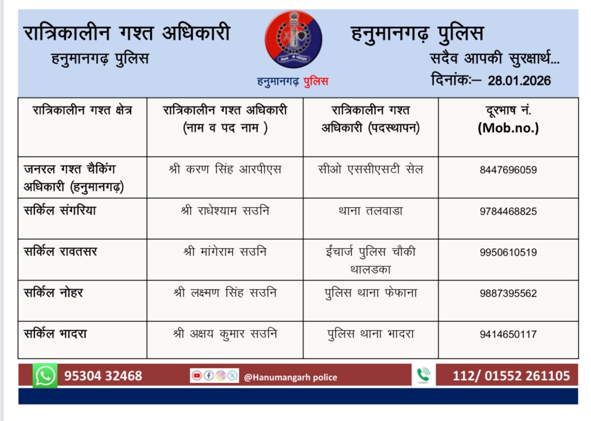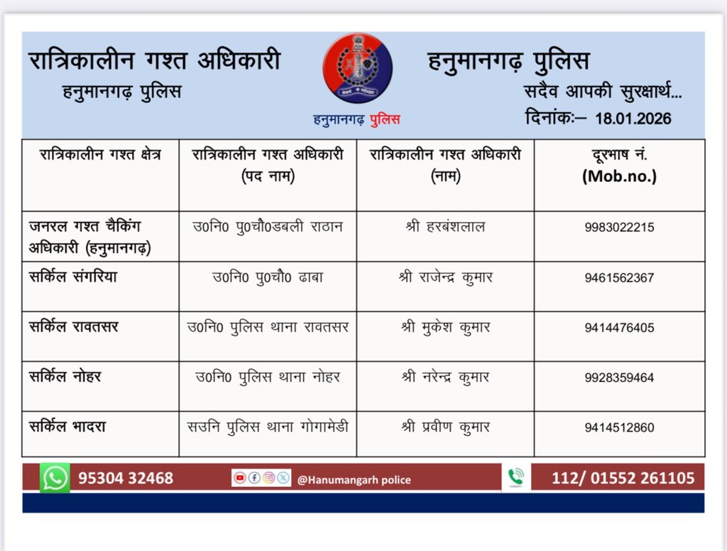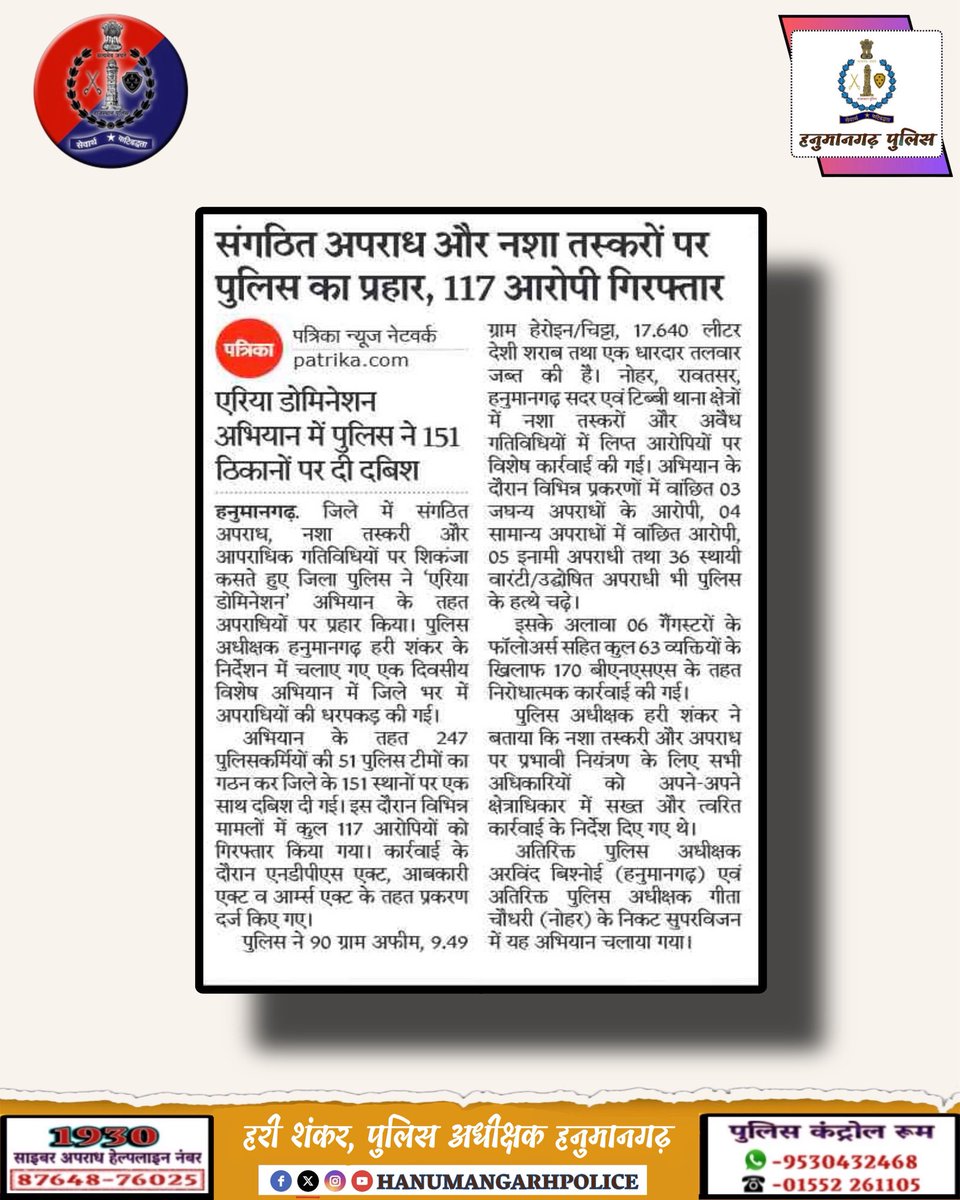 OFFICIAL ACCOUNT OF HANUMANGARH POLICE