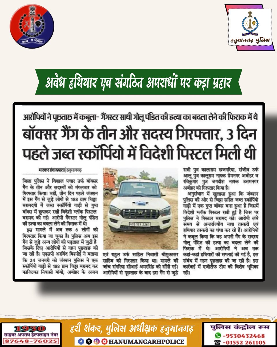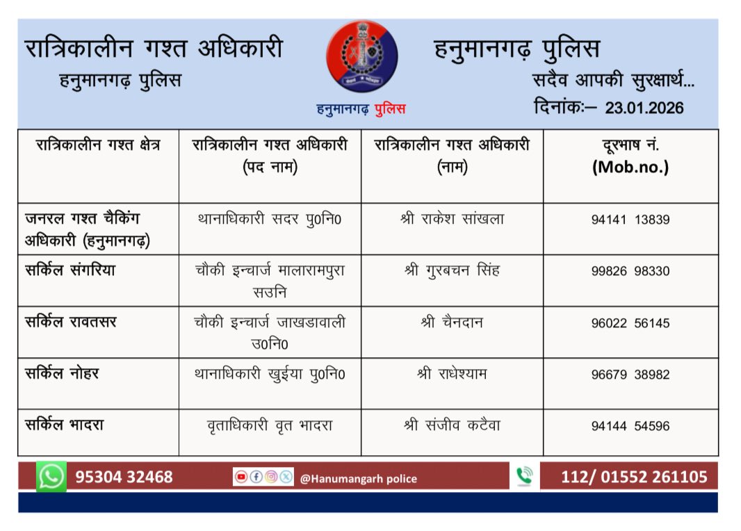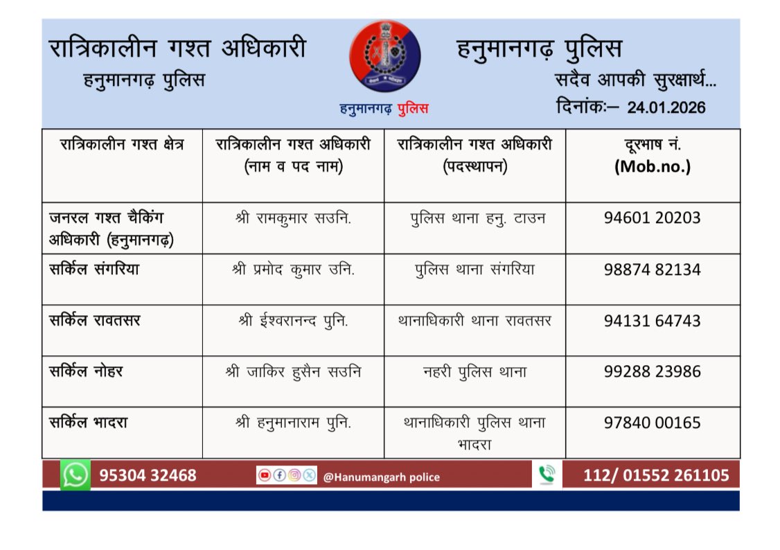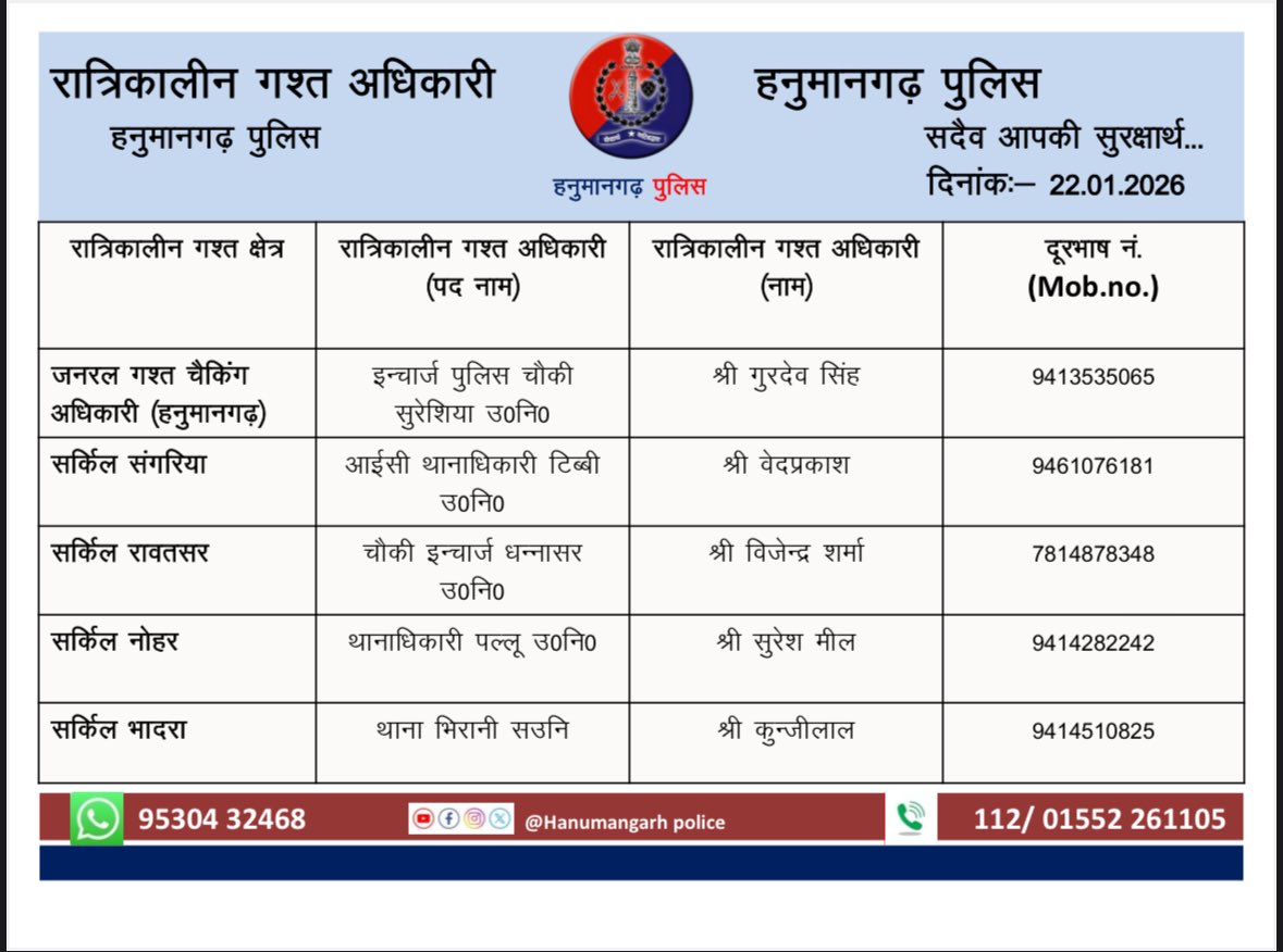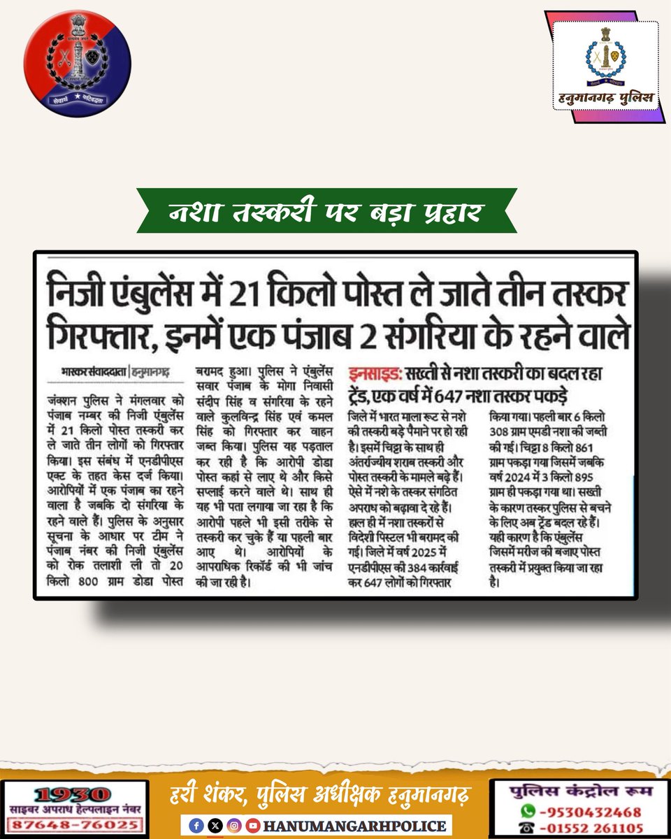 OFFICIAL ACCOUNT OF HANUMANGARH POLICE
