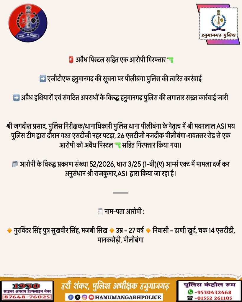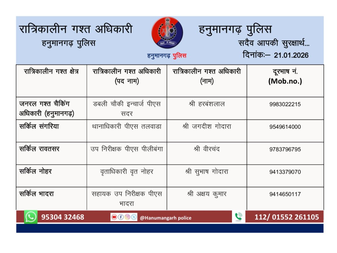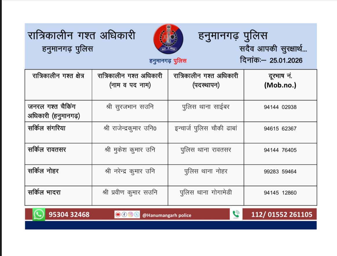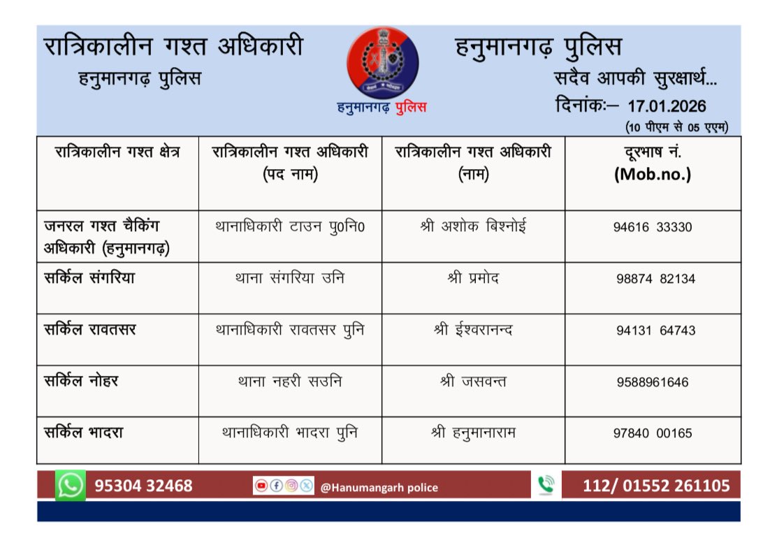 OFFICIAL ACCOUNT OF HANUMANGARH POLICE