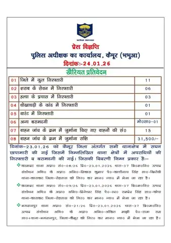 कैमूर पुलिस के आधिकारिक प्रोफाइल पर आपका स्वागत है ।
