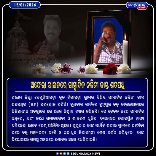 ଗଞ୍ଜାମ ଜିଲ୍ଲା ଓ ବେଗୁନିଆପଡ଼ା ଖବରର ନିର୍ଭରଯୋଗ୍ୟ ଉତ୍ସ। ପ୍ରତି ମୁହୂର୍ତ୍ତର ଅପଡେଟ୍ ପାଆନ୍ତୁ।