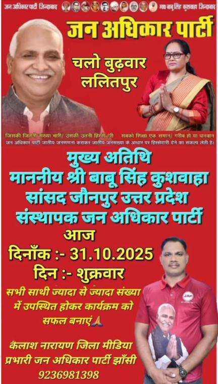 जिला मीडिया प्रभारी - JAP झाँसी 9236981398
