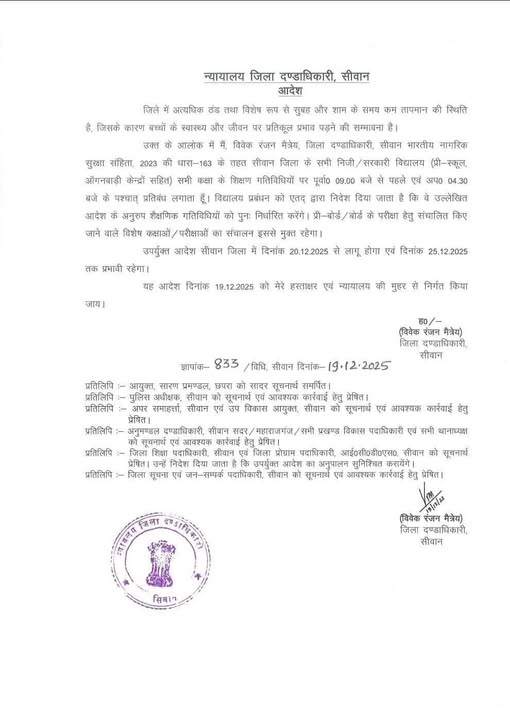 सीवान/बिहार के सभी ताज़ा ख़बरों को जानने के लिए फॉलो करें।