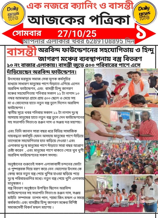 বাসন্তী ও ক্যানিং ব্লকের সমস্ত খবর আমরা করে থাকি ,আমরা একজন সাংবাদিক তাই এলাকার মানুষজন আমাদের..অনু.