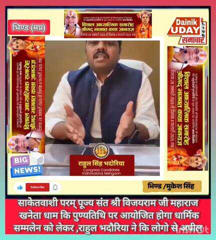 अपने क्षेत्र की हर खबर अपने मोबाइल पर जानने के लिए चैनल को आज ही फॉलो करें