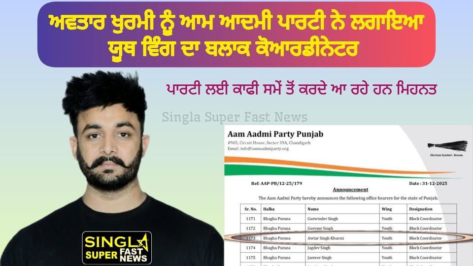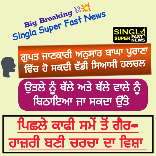 75083-65088 ਕ੍ਰਿਸ਼ਨ ਸਿੰਗਲਾ ਪੱਤਰਕਾਰ (ਅਜੀਤ) Plz Singla Super Fast News ਨੂੰ facebook ਤੇ ਫਾਲੋ ਕਰੋ