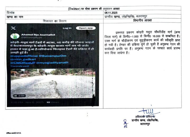 जिला ब्यूरो अमर ख्याल समाचार पत्र बलरामपुर उत्तर प्रदेश संपर्क सूत्र- 9517668813