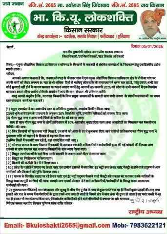 राष्ट्रीय अध्यक्ष भारतीय किसान यूनियन लोक शक्ति 7983622121