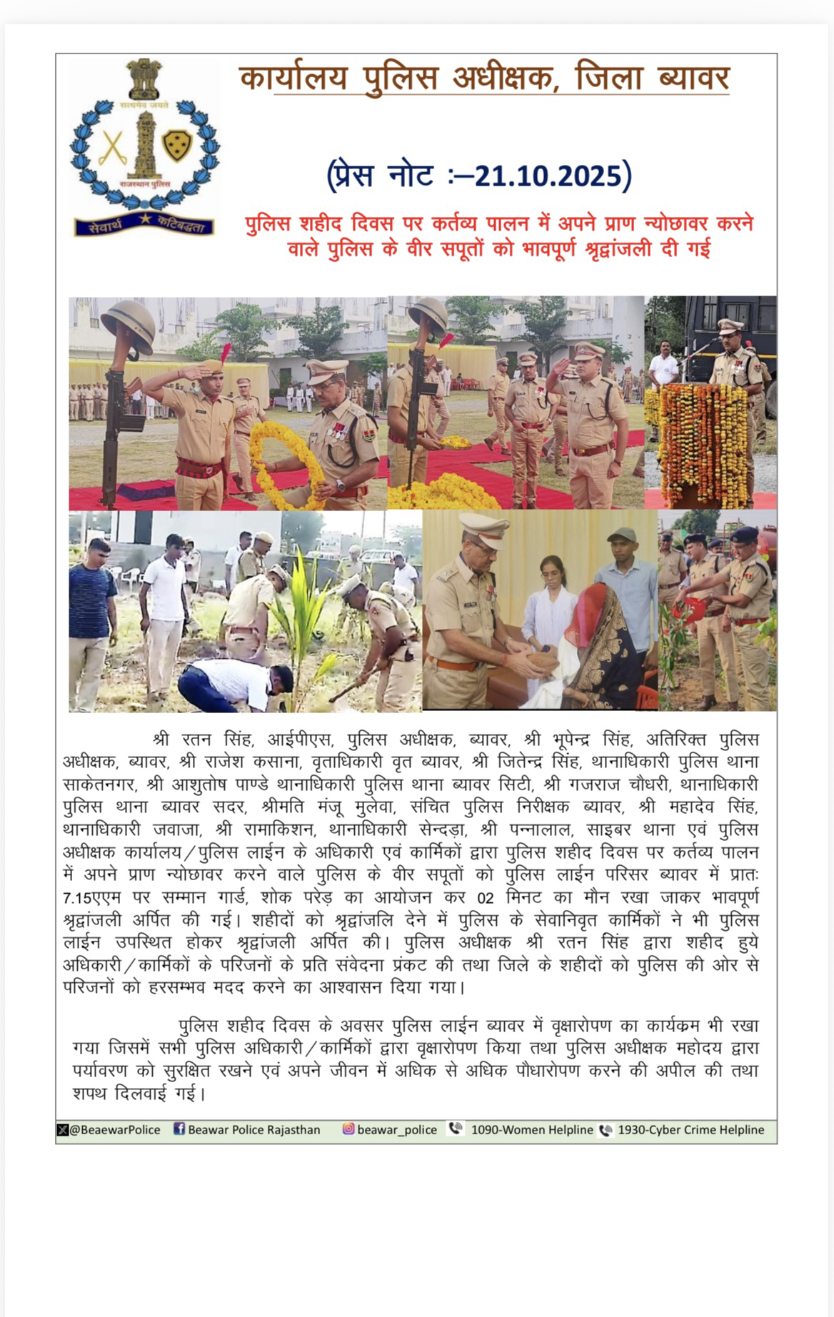 OFFICIAL ACCOUNT OF BEAWAR POLICE
