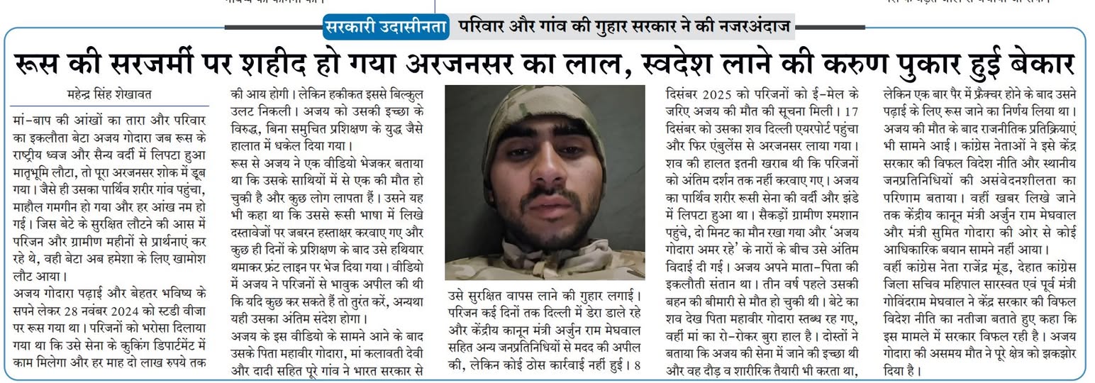 Hindi Daily News Paper, Published from Bikaner & Jaipur