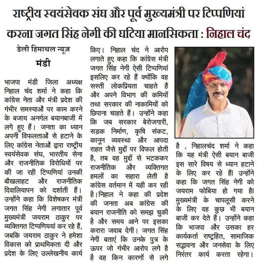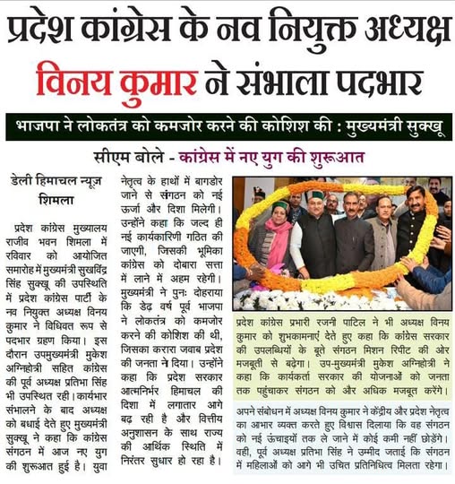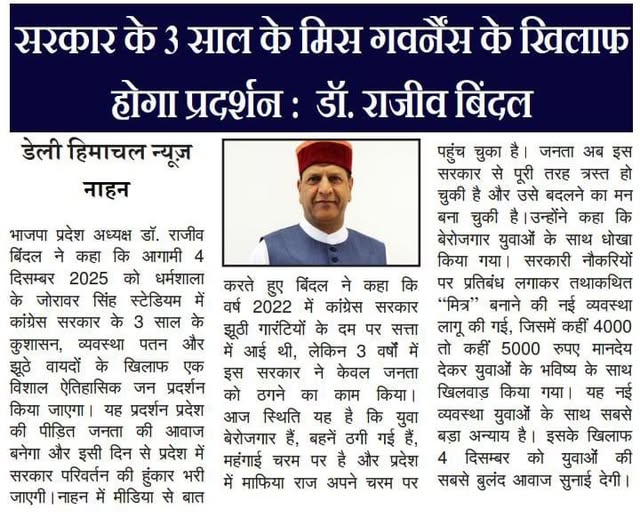 हिमाचल की ताजा न्यूज़ अपडेट के लिए आज ही जुड़े हमारे साथ, पेज को लाइक और फॉलो करें, आपकी सहायता के लिए हम व्हाट्सएप नंबर 98166-62608 पर उपलब्ध है।