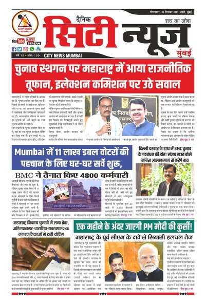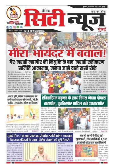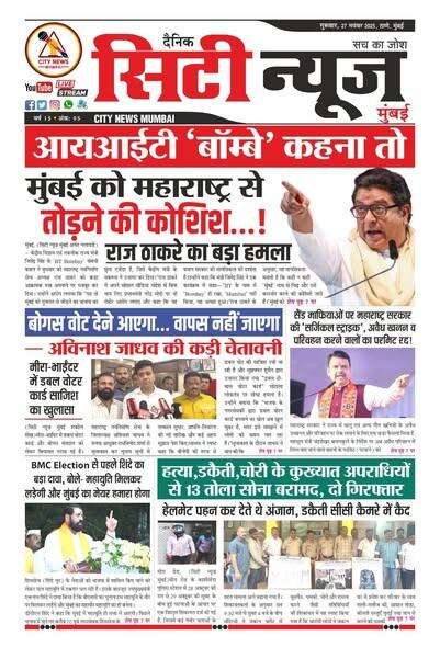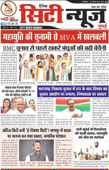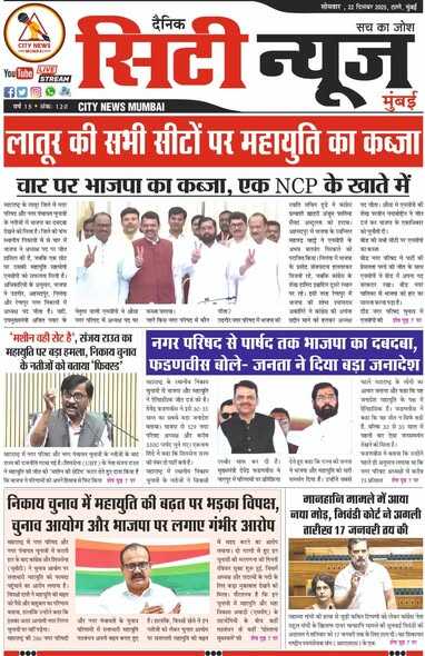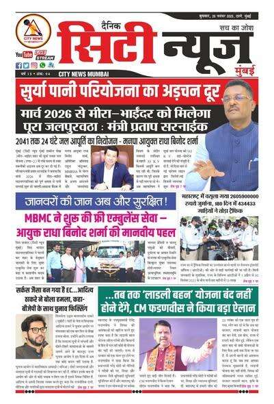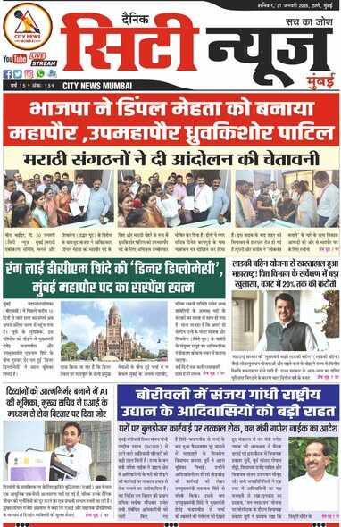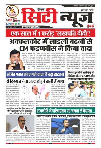 दैनिक सिटी न्यूज़ मुंबई , YouTube, instram, facbook, x पर रोज अपडेट न्यूज़ मुंबई, ठाणे,