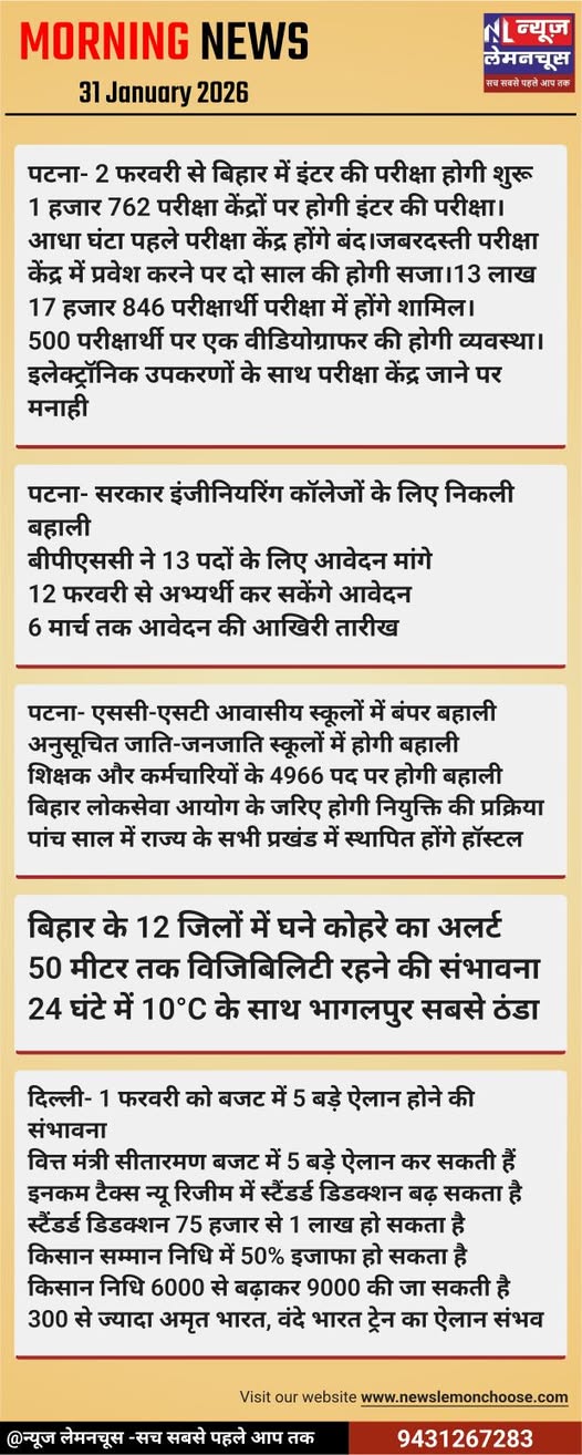 नमस्कार न्यूज लेमनचूस पर आपका स्वागत है,यहां हम आपको बिहार और देश की हर खबर निष्पक्ष तरीके से देंगे
