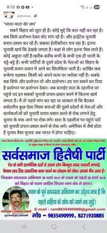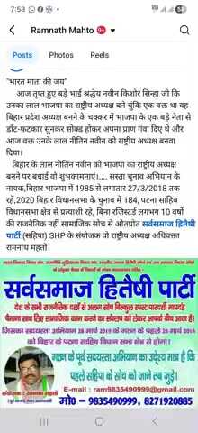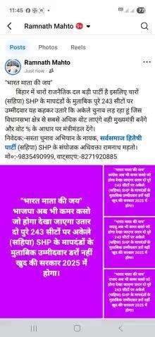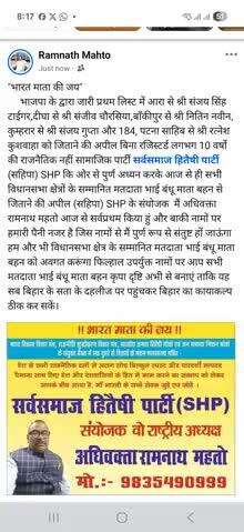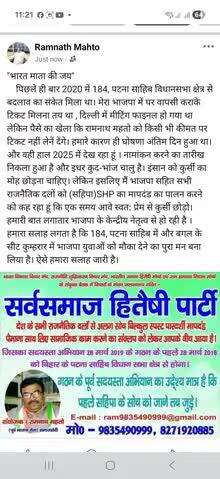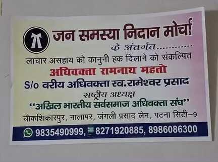 सर्वसमाज हितैषी पार्टी संयोजक अधिवक्ता रामनाथ महतो मो०:-9835490999/8986086300