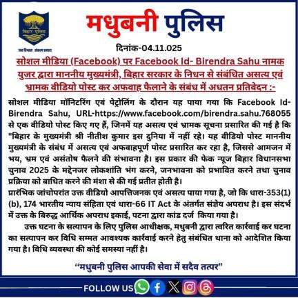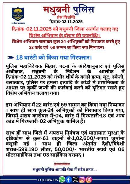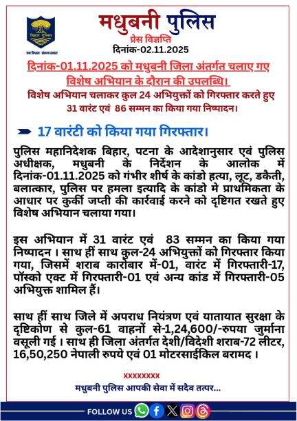मधुबनी पुलिस आपकी सेवा में सदैव तत्पर