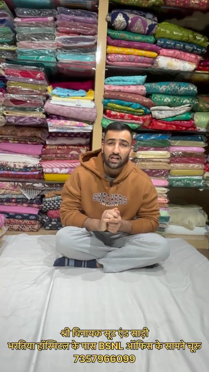नया शोरूम चूरू में भरतिया हॉस्पिटल के पास BSNL ऑफिस के सामने चूरू suit | saree | lehenga | bedsheet