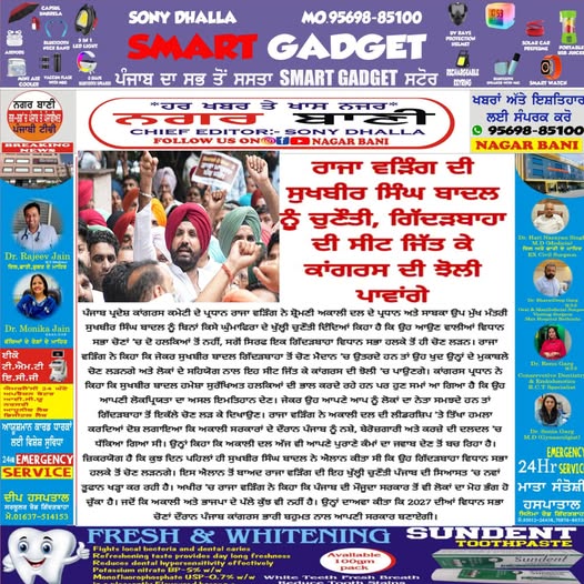 ਗਿੱਦੜਬਾਹਾ ਇਲਾਕੇ ਦੀਆਂ ਖ਼ਬਰਾਂ ਲਗਵਾਉਣ ਲਈ ਸੰਪਰਕ ਕਰੋ 9569885100