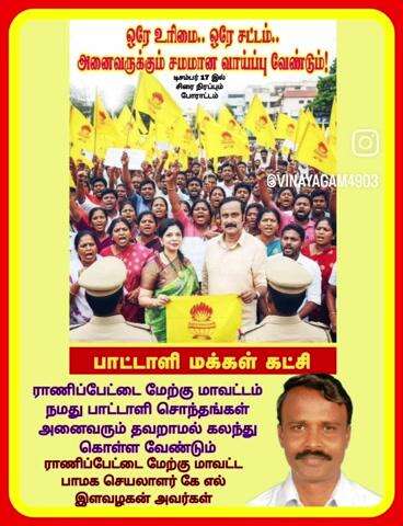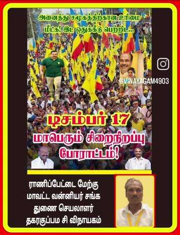 ராணிப்பேட்டை மேற்கு மாவட்டம் வன்னியர் சங்கம் மாவட்ட துணை செயலாளர் தகரகுப்பம் விநாயகம்