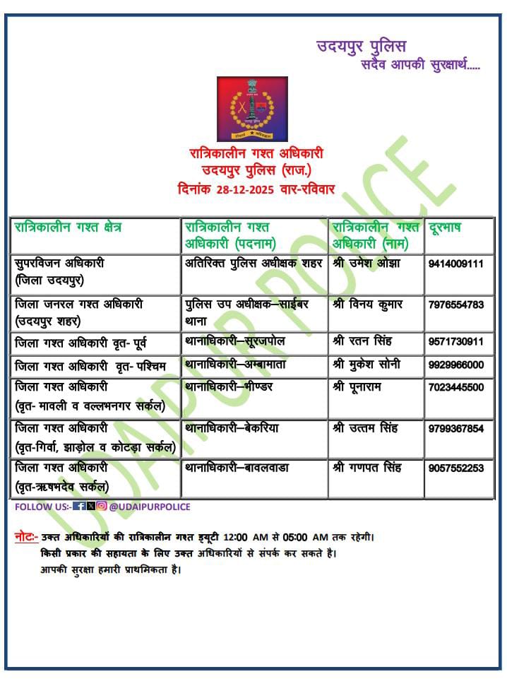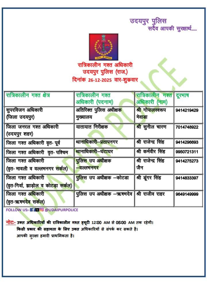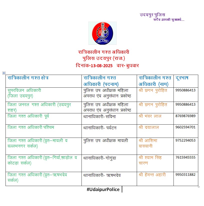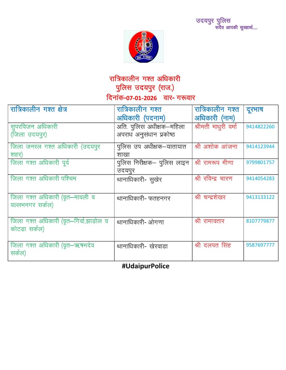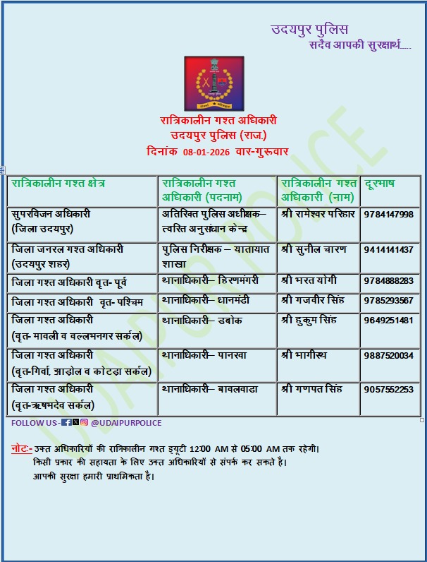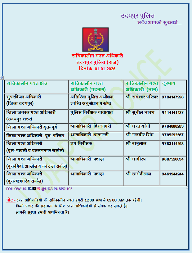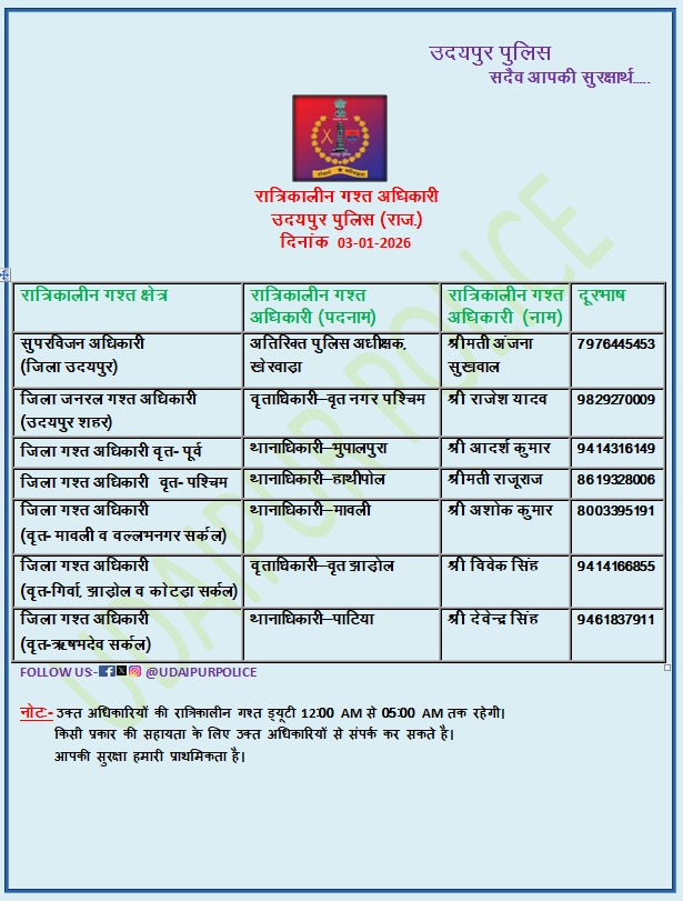 OFFICIAL ACCOUNT OF UDAIPUR POLICE