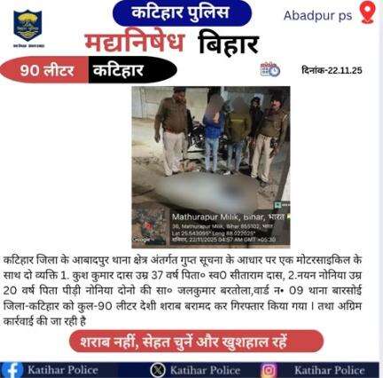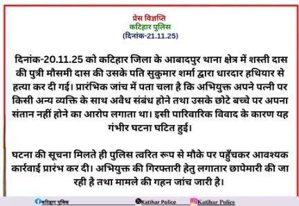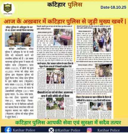 कटिहार पुलिस के आधिकारिक प्रोफाइल पर आपका स्वागत है।