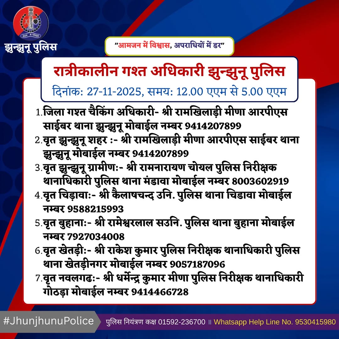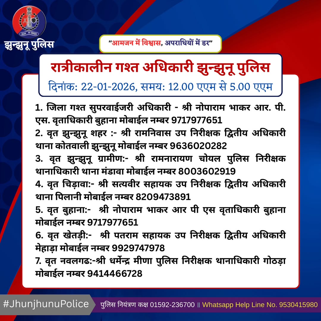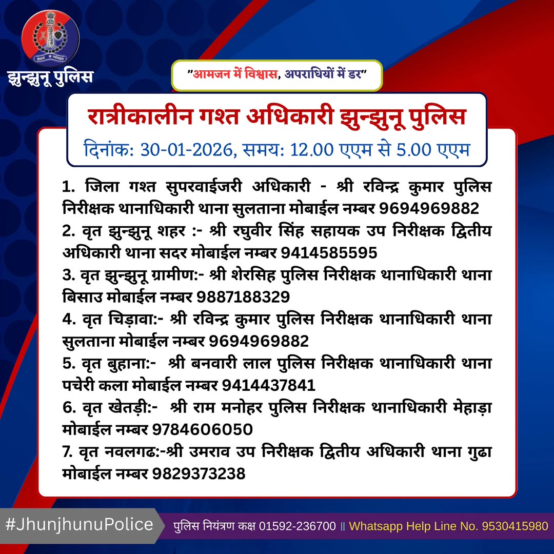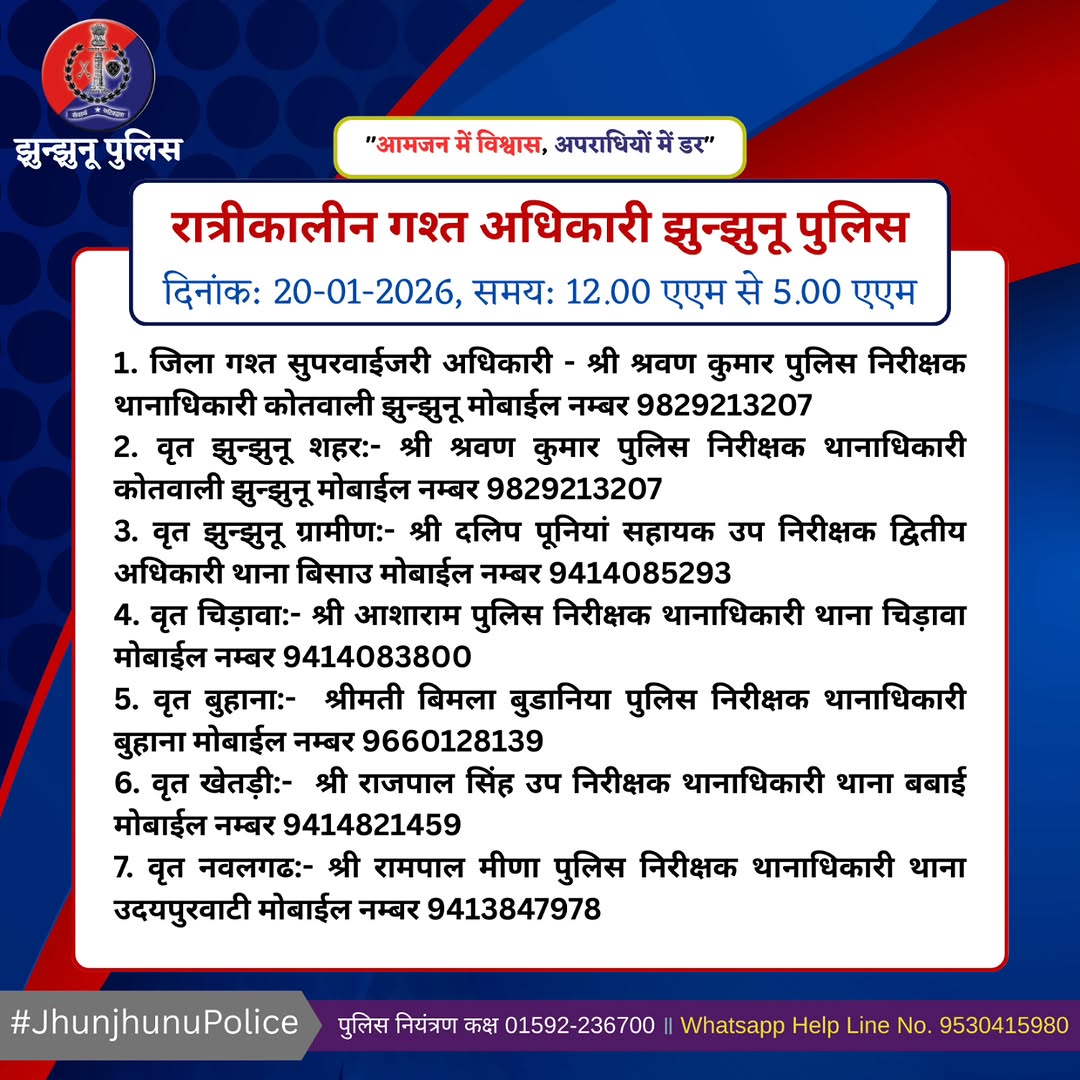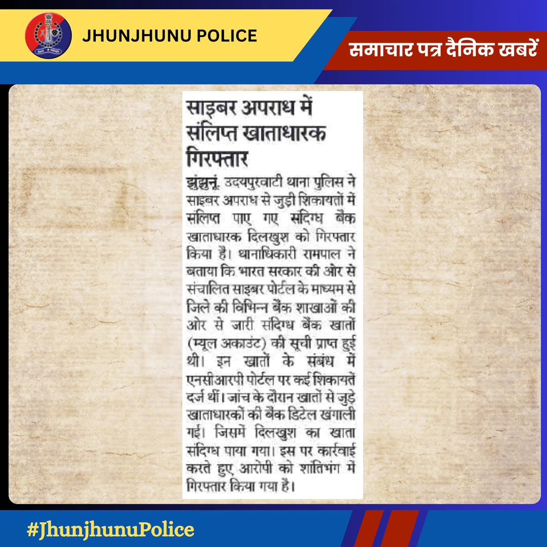 OFFICIAL ACCOUNT OF JHUNJHUNU POLICE