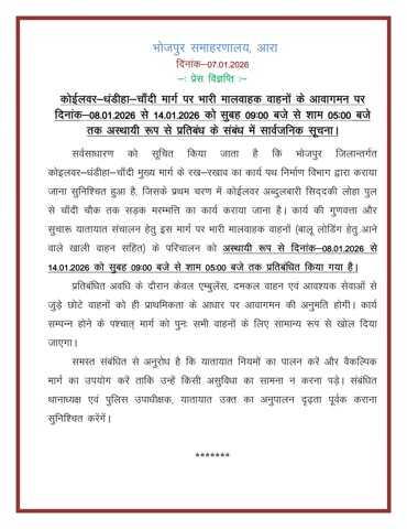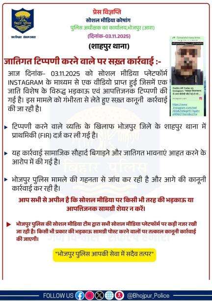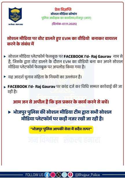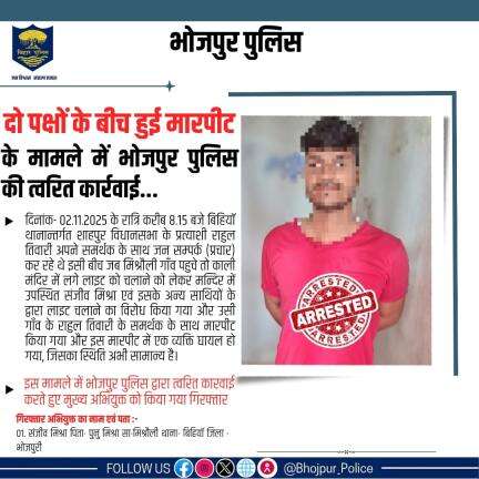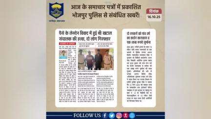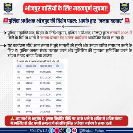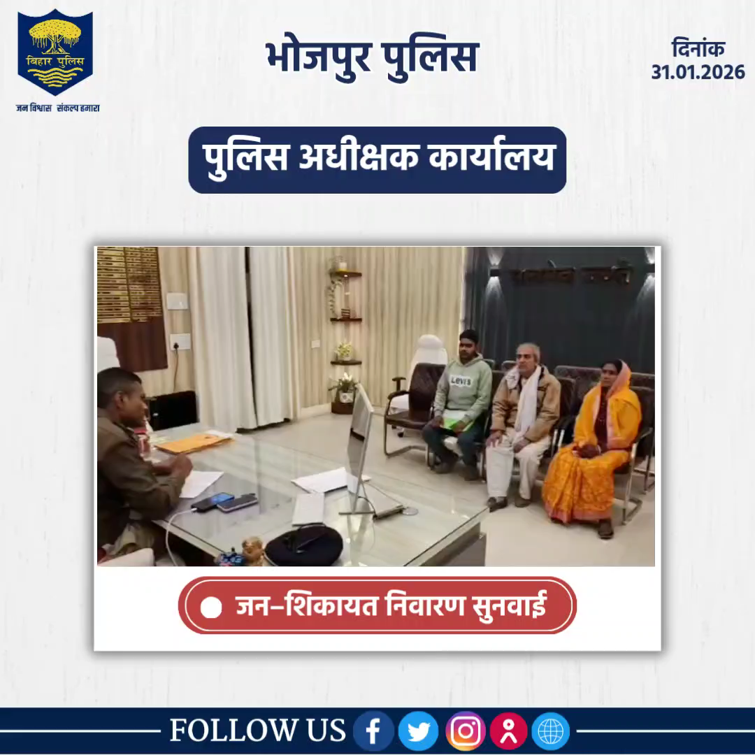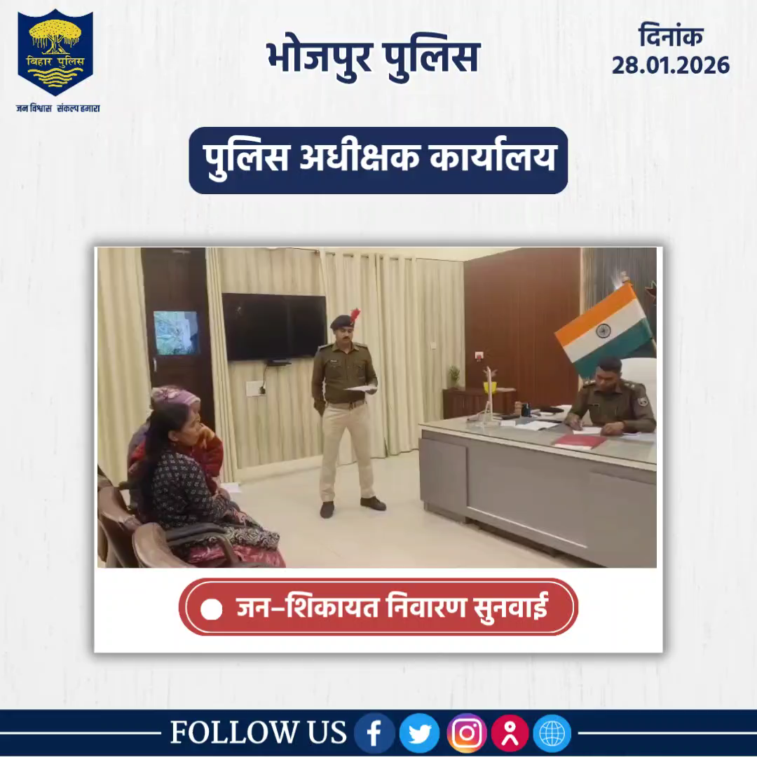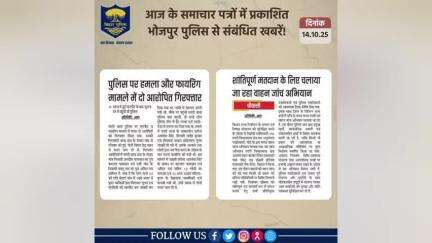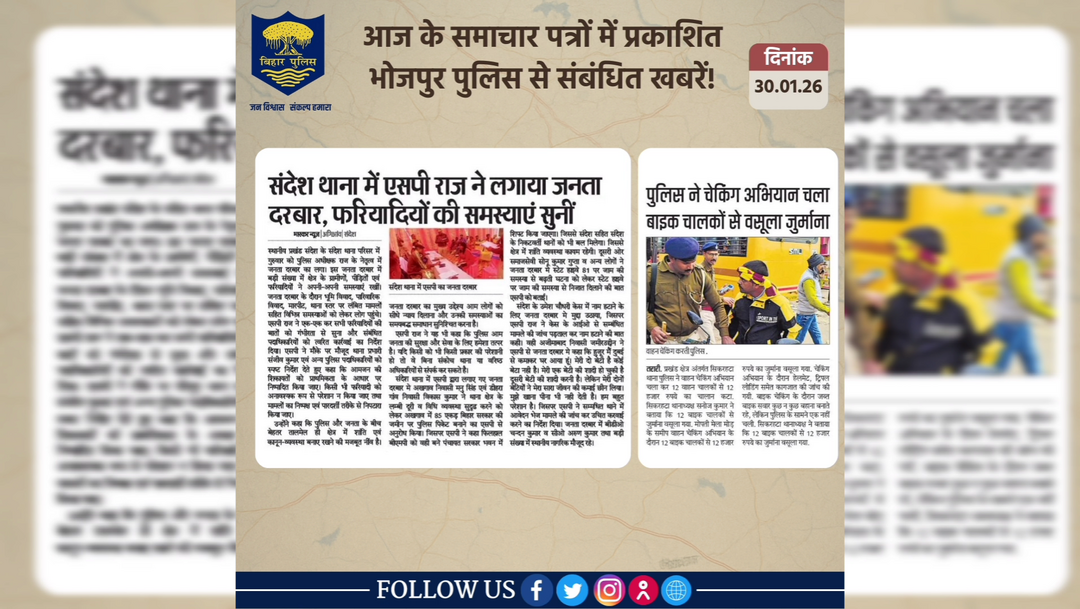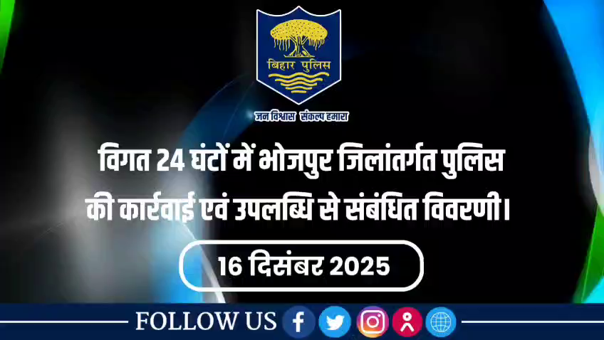 भोजपुर पुलिस के आधिकारिक प्रोफाइल पर आपका स्वागत है।