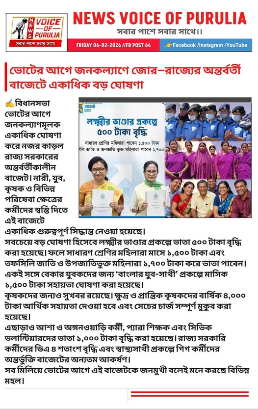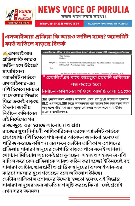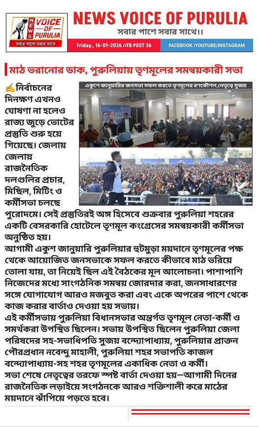 𝐍𝐄𝐖𝐒 𝐕𝐎𝐈𝐂𝐄 𝐎𝐅 𝐏𝐔𝐑𝐔𝐋𝐈𝐀 -সবার পাশে সবার সাথে RegNo-WB-17-0011590