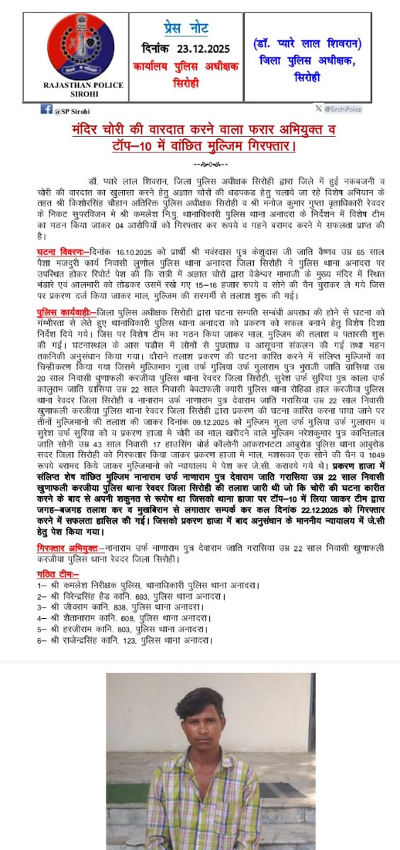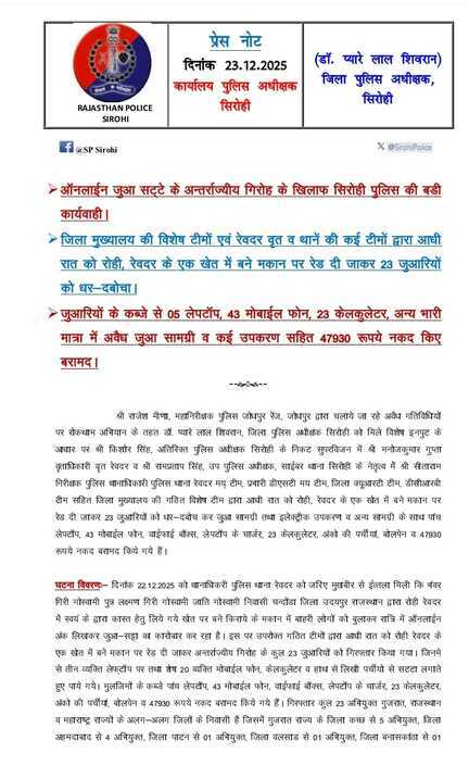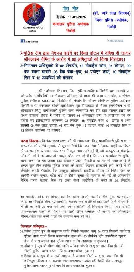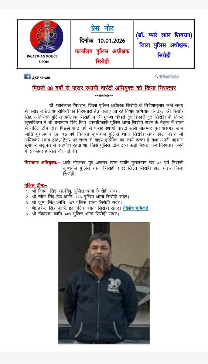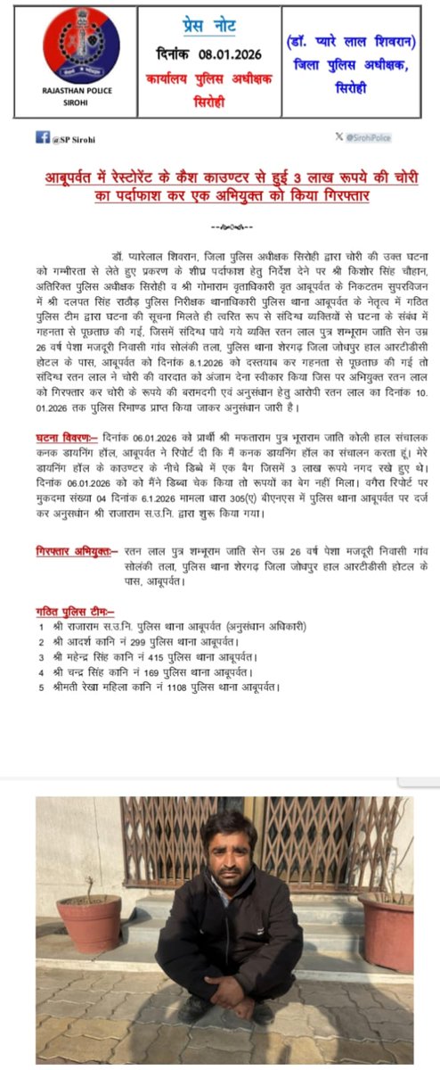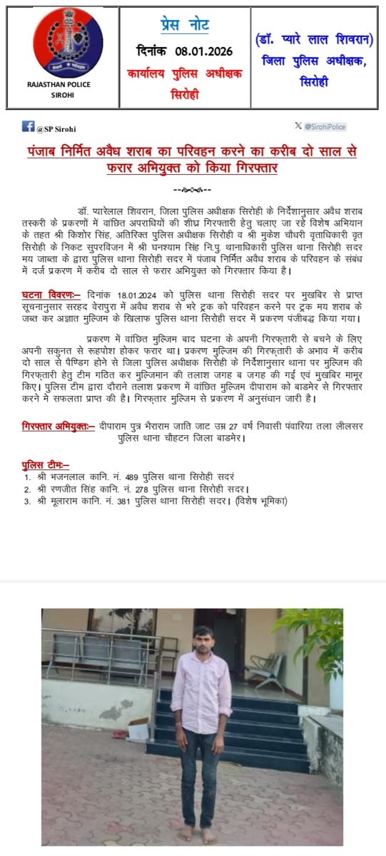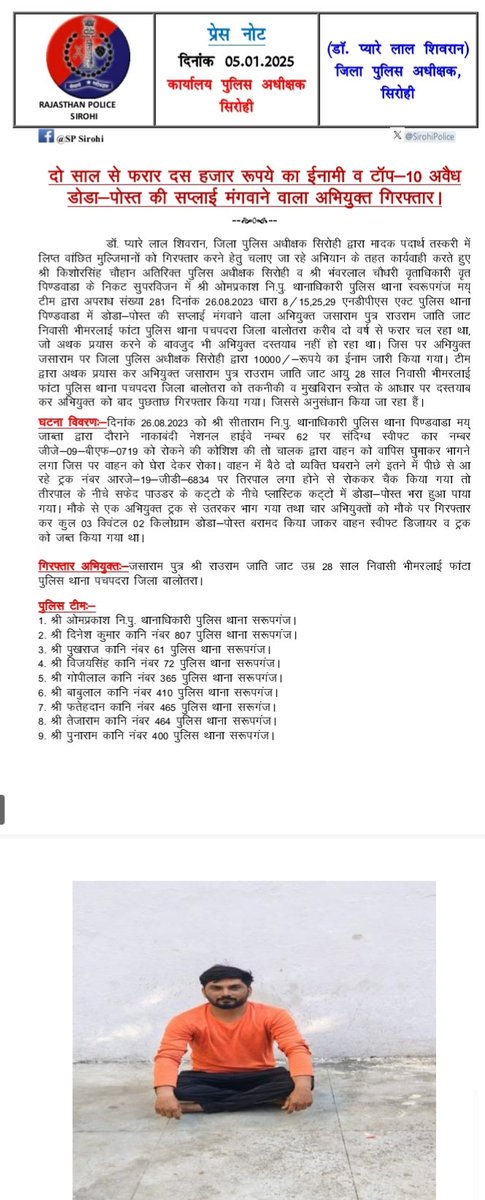 OFFICIAL ACCOUNT OF SIROHI POLICE