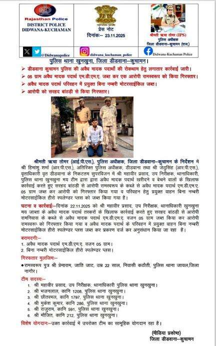 OFFICIAL ACCOUNT OF DIDWANA- KUCHAMAN POLICE