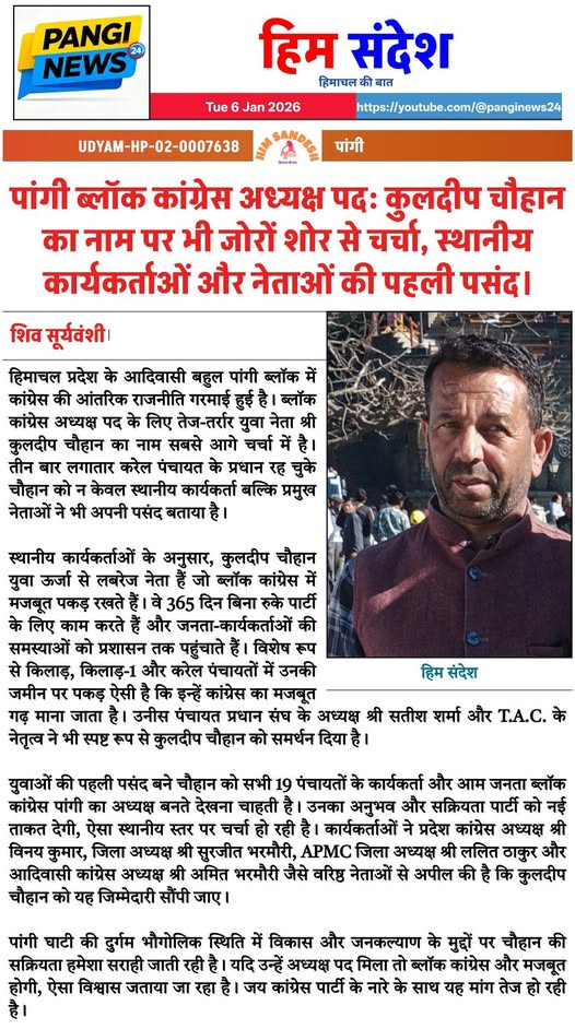 हिम संदेश एक स्थानीय समाचार चैनल है, जो मुख्यतः चंबा, हिमाचल प्रदेश से जुड़े क्षेत्रीय समाचार,