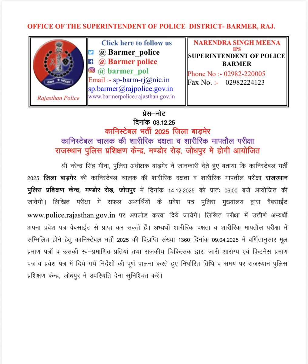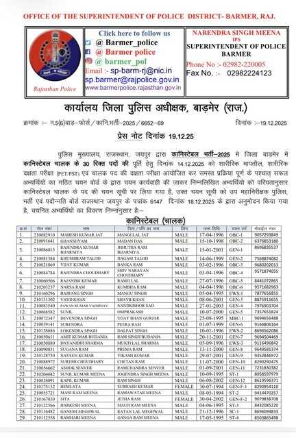 OFFICIAL ACCOUNT OF BARMER POLICE