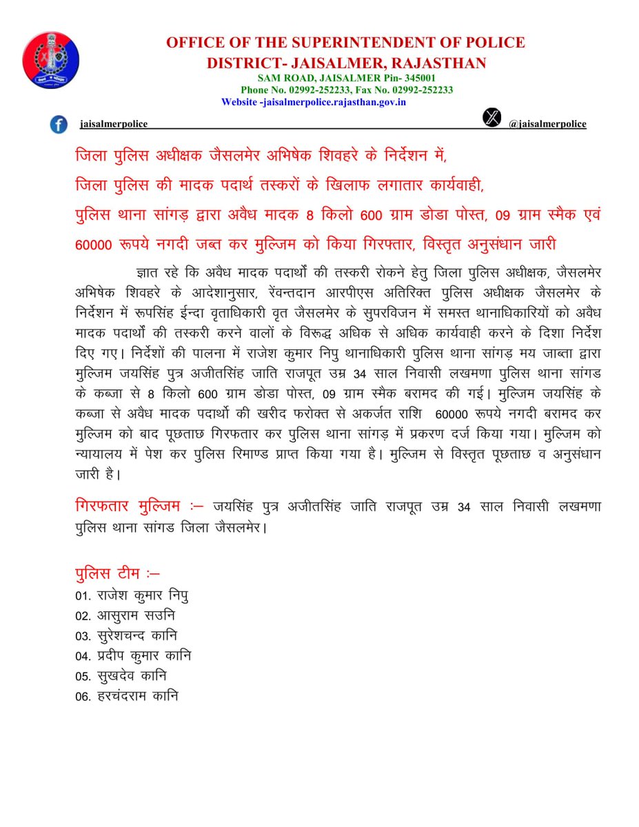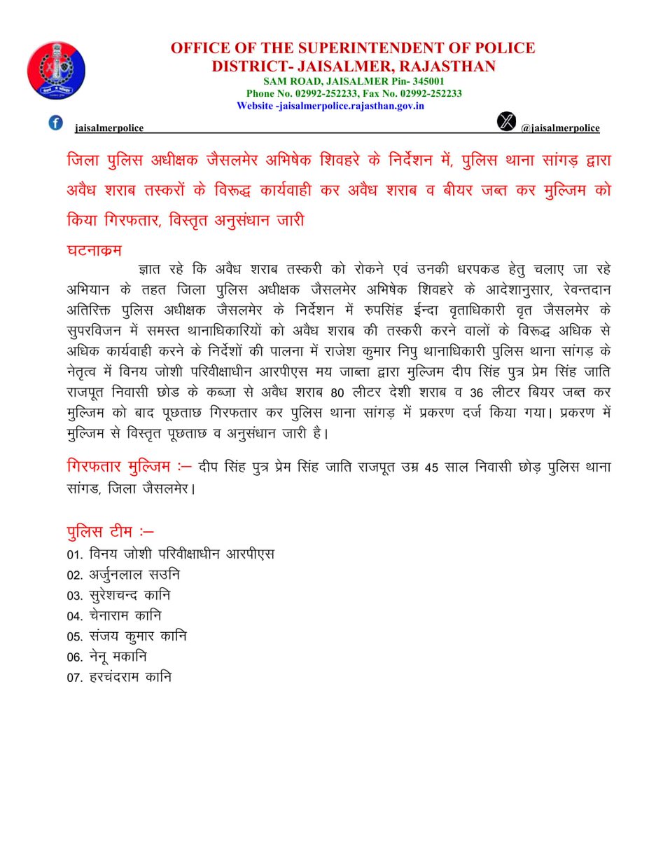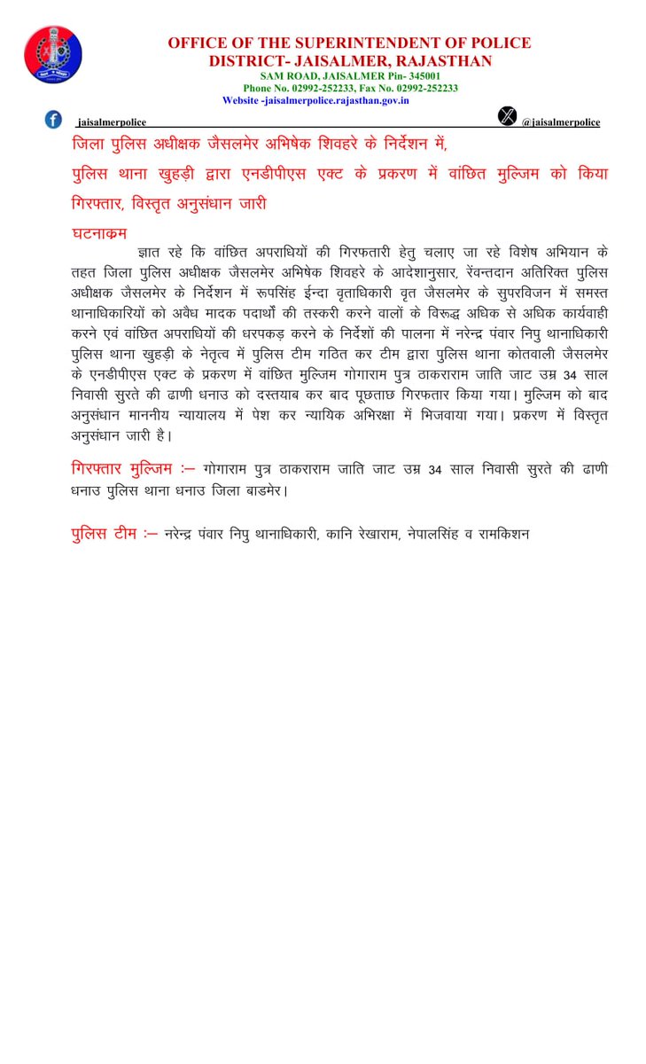 OFFICIAL ACCOUNT OF JAISALMER POLICE