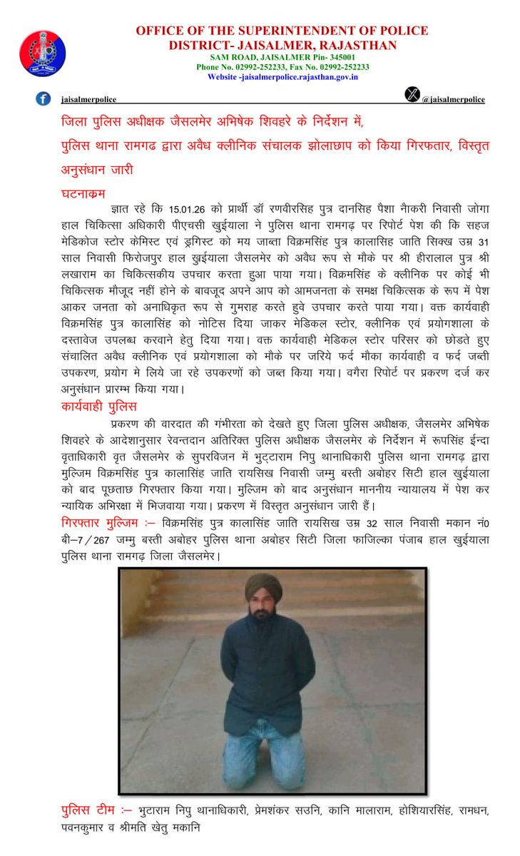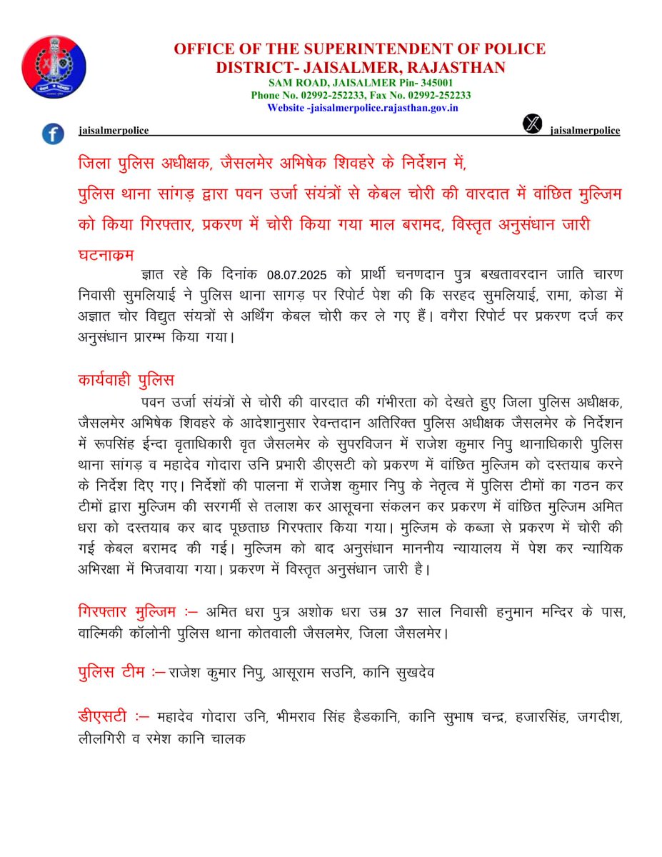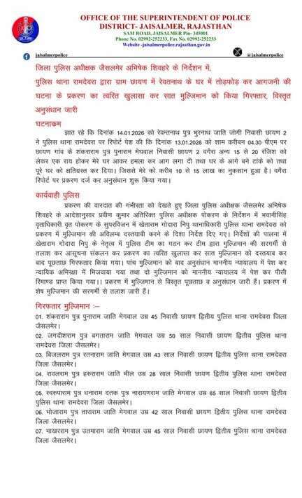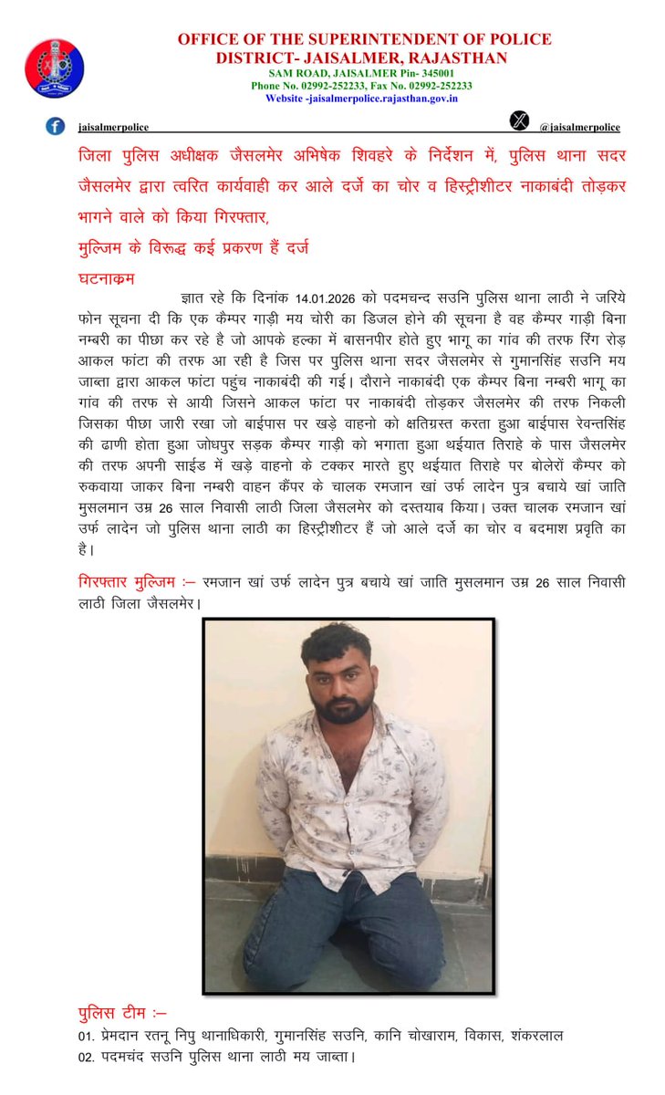 OFFICIAL ACCOUNT OF JAISALMER POLICE